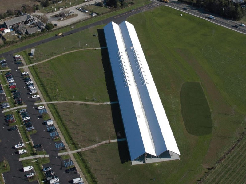 Drawing inspiration from local barn houses, Herzog de Meuron envisioned a single-story structure — 94 feet wide and 634 feet long — with the building’s galleries arranged in two rows along a central corridor, designed for flexibility, with temporary walls so that the size of the rooms can be adjusted. The building is covered by two parallel pitched roofs — one for each row — with north-facing windows that take full advantage of the soft northern light. The building doubled the size of the existing facility with 12,000 square feet of flexible galleries, including the first galleries dedicated to permanent collection. The museum includes educational and multi-purpose spaces, café and kitchen. The design incorporates administrative offices and onsite space for storage and care of the permanent collection.